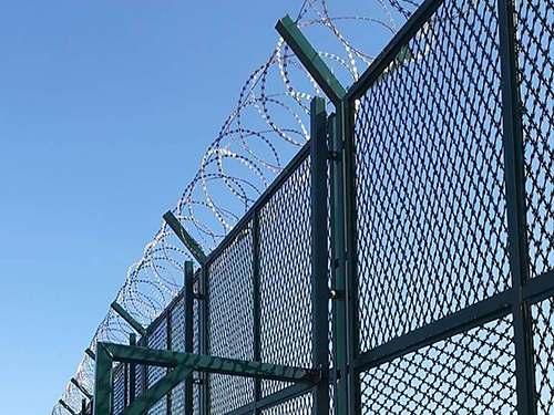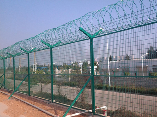 - 【產(chǎn)品簡(jiǎn)介】:機(jī)場(chǎng)監(jiān)獄護(hù)欄是由V型支架立柱,加強(qiáng)型焊接片網(wǎng),安全防盜連接件和熱鍍鋅刀片刺網(wǎng)組成強(qiáng)度和安全防御性級(jí)別很高。近年來(lái),被廣泛應(yīng)用在機(jī)場(chǎng),軍事基地等高安全場(chǎng)所。材質(zhì):優(yōu)質(zhì)低碳鋼絲絲徑:5mm網(wǎng)孔:50mmX100mm,50mmX200mm立柱:60x80mm鍍鋅方管